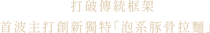 有別於重鹹、重口味、油膩感十足的拉麵印象,泡系拉麵的特色就在於豚骨湯底沸騰後,從豬大骨釋放出的乳白色精華富含脂質及蛋白質,將其攪拌至產生「泡沫」便能幻化出獨特的乳白色湯,只有熬煮新鮮的大骨等食材才能產生的風味。